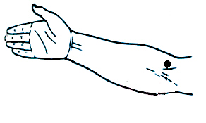 1、用砭石錐點按尺澤穴,尺澤穴是肺經(jīng)的穴位,而“肺主皮毛”。位于肘橫紋中,肱二頭肌腱橈側(拇指側)凹陷處。
