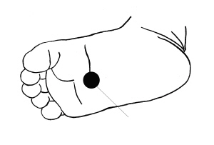2、用砭石錐點按涌泉穴,尺澤穴腎經(jīng)的穴位,滋補腎水。位于足底前部凹陷處第二、三趾趾縫紋頭端與足跟連線的前三分之一處。[擴展閱讀:涌泉穴及相關介紹]