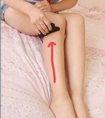 2、從膝蓋彎根開(kāi)始,向下刮,每次只能刮一個(gè)方向 不能像搓澡一樣來(lái)回的刮。如果有下肢靜脈曲張或水腫,則必須從下往上刮,以改善血液循環(huán),否則相反方向會(huì)越來(lái)越嚴(yán)重。沒(méi)有的話,兩個(gè)方向皆可,但是當(dāng)然還是下至上好,使得疲憊了一天的腿放松,血液循環(huán)有所改善。
