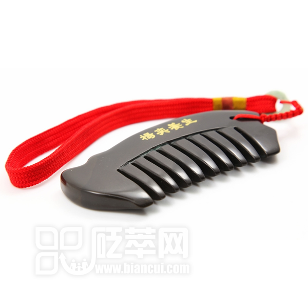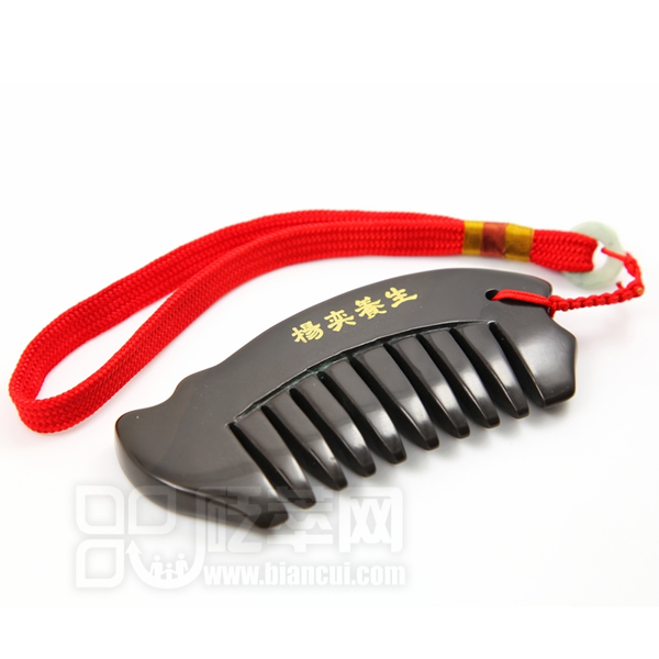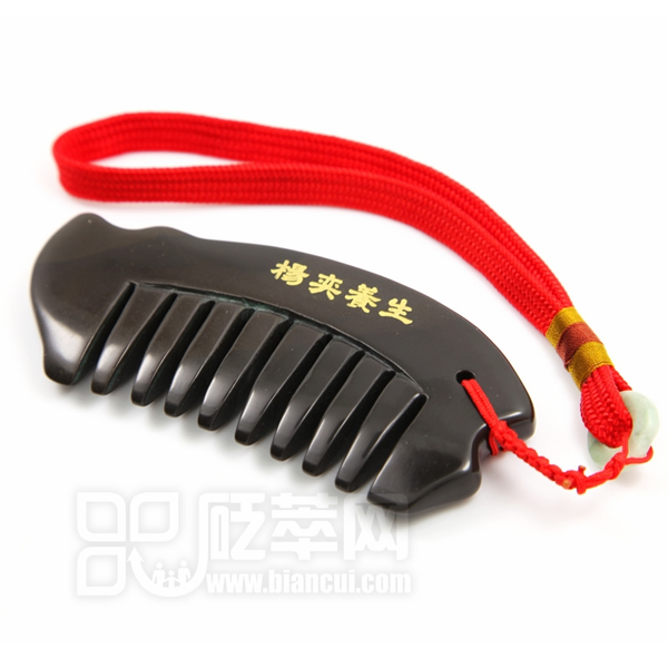 砭石梳,是用深褐色泗濱浮石加工而成的具有養生保健功效的用具。砭石梳外形獨特,曲線優美,仿佛一條游動的小魚兒。構造上分為梳背及梳齒兩部分,梳齒用于頭部的梳理及穴位保??;砭梳頭部及尾部帶有波浪形的小曲線,手感舒適,適用于局部刮痧及穴位點按。梳頭時,在人體生物場的強刺激下,可以激發砭石梳所特有的熱效應功能。