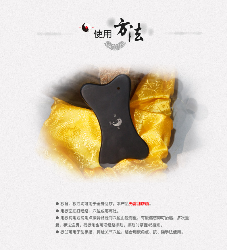 3、砭板使用時需與皮膚直接接觸,建議專人專用,且每次使用前做好消毒工作。