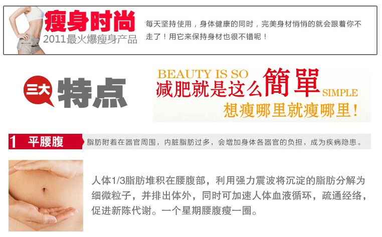 4、具備目前最最安全的被動減肥減脂功能,是“分量”女性和“肚量”男士最理想的塑身產品;